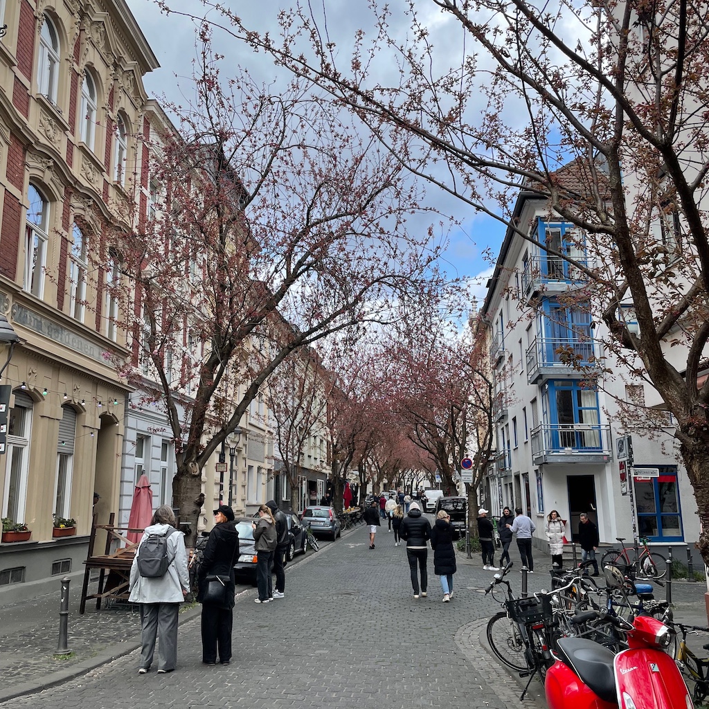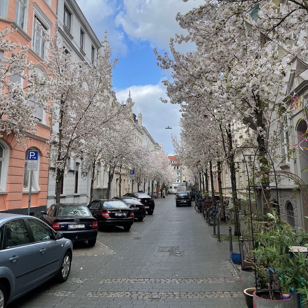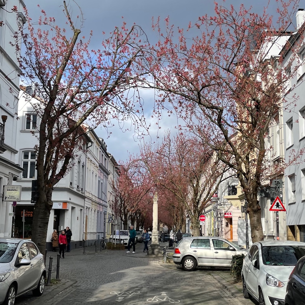 Nach Begrüßung meiner Lieben und telefonischer Ankunftsmeldung nach Bielefeld unternahm ich mit Verspätung den Spaziergang, heute etwa kürzer. Unter anderem durch die Breite- und Heerstraße, wo die Kirschen weiterhin noch gar nicht blühen. Das hält weder die Stadtverwaltung von Straßensperren ab noch zahlreiche Besucher, mit teilweise riesigen Kameraobjektiven die Knospen zu fotografieren. Was soll erst werden, wenn die Bäume wirklich blühen.