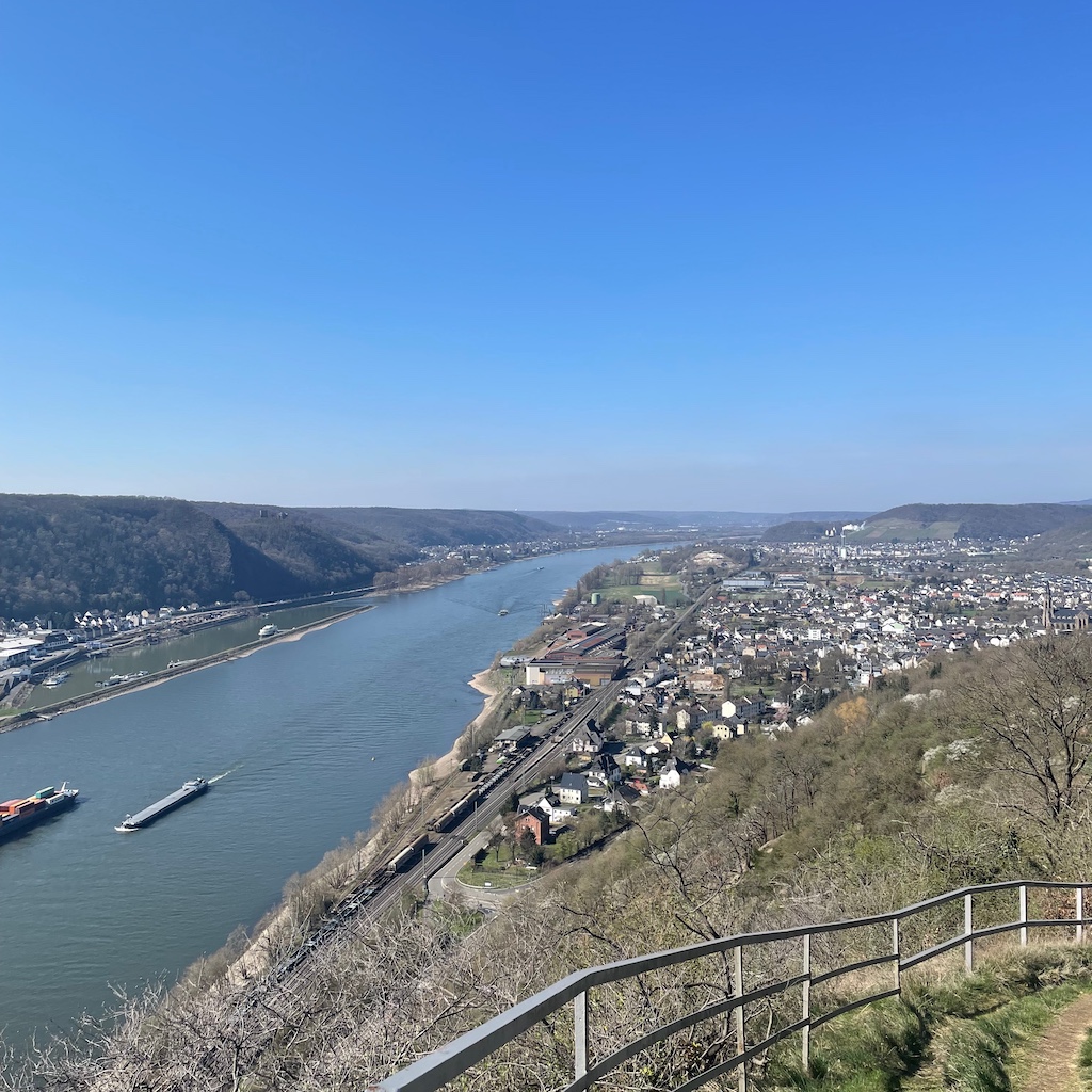 Donnerstag: Wandertag, heute die 5. Etappe des Rheinsteigs von Leutesdorf nach Bad Hönningen. Die Anreise mit der Bahn verzögerte sich um etwa eine Stunde wegen „Reparatur an einem anderen Zug“. Ich sah es gelassen, die Sonne schien auf den Beueler Bahnsteig und ich hatte genug zu lesen. Auf der Karte wirkt die Wanderstrecke harmlos, doch sie hat es steigungsmäßig in sich. Bereits zwanzig Minuten nach Abmarsch in Leutesdorf war ich das erste Mal außer Atem, trotz täglichem Turmtreppentraining.