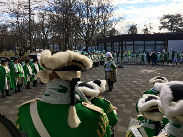 Über die Umstände zu berichten, wie es dazu kam, würde zu weit führen; vielleicht hole ich das später einmal nach. Fakt ist: Meine ursprüngliche Distanz gegenüber dem rheinischen Karneval ist seit etwa zwei Jahren in Auflösung begriffen beziehungsweise sich am auflösen, wie der Rheinländer sagt. Oder heißt es ‚auf am lösen‘? Egal. Anfang letzten Jahres unterschrieb ich den Antrag auf Mitgliedschaft bei der Karnevalsgesellschaft Fidele Burggrafen Bad Godesberg e. V., wohlgemerkt in der Absicht, den Verein durch meinen finanziellen Beitrag und ansonsten passive Mitgliedschaft zu unterstützen, also keine Uniform, kein Stippeföttchen. Ich hatte die Truppe zuvor bei mehreren Veranstaltungen kennen gelernt als sehr nette, lustige, offene Menschen, in deren Mitte ich mich sehr wohl fühlte (und noch immer fühle). Spätestens seit dem spontanen Geburtstagsständchen im letzten Jahr hatten sie mich gewonnen.