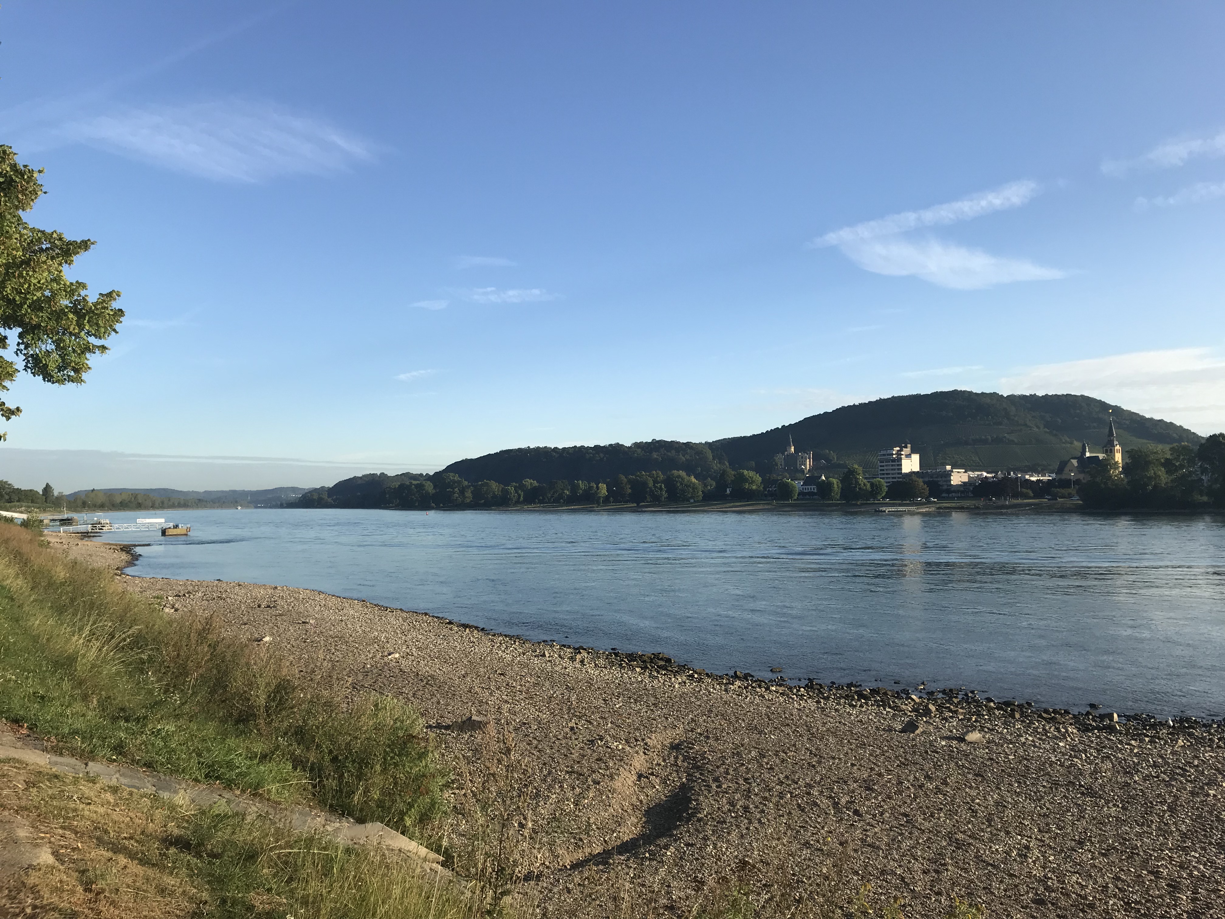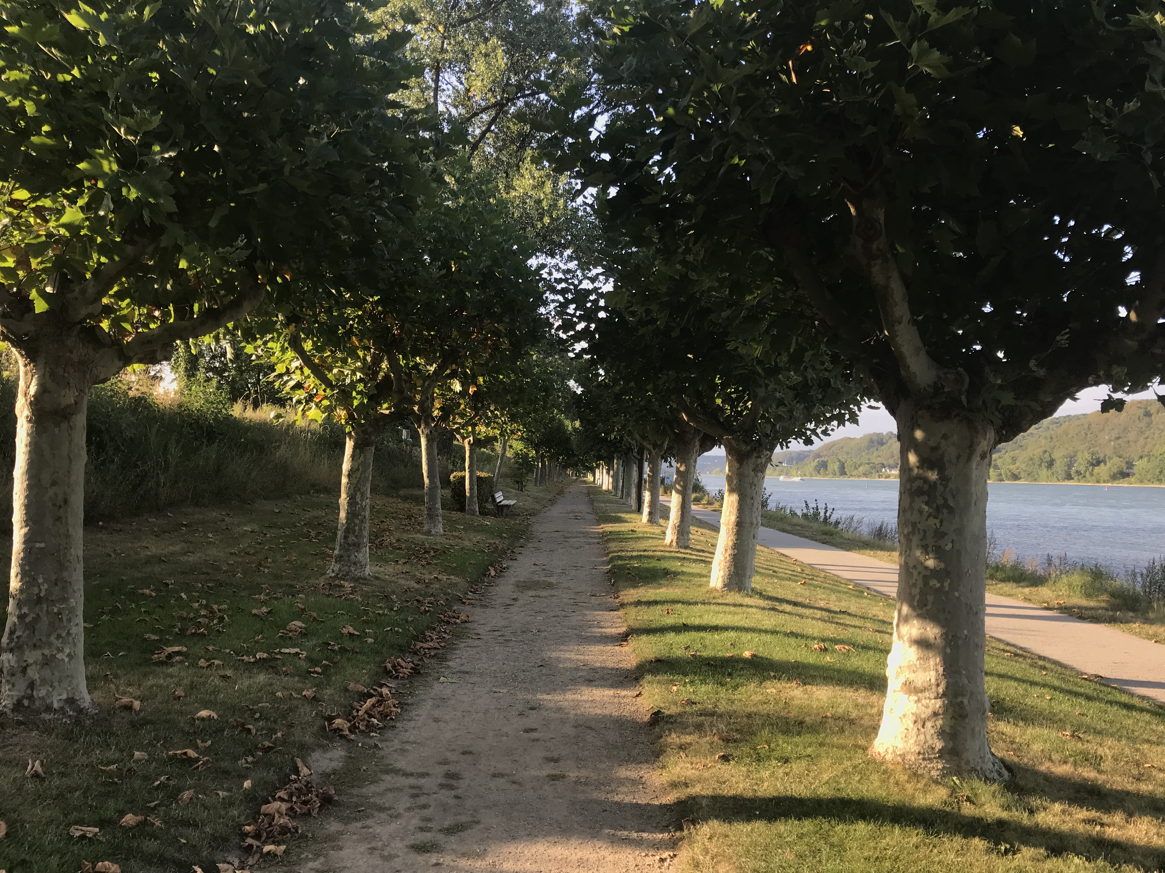 Auch dem Rückweg durch die Kälte, die sich kälter anfühlte als das Thermometer am UN-Campus anzeigte, wäre ich einem Glühgetränk am Rheinpavillon zugeneigt gewesen, leider ist die Bude noch nicht aufgebaut. Dennoch war die Terrasse von Lichterketten illuminiert, an der Außentheke stand eine Gruppe und trank aus Pappbechern. Augenscheinlich eine Gesellschaft, deshalb verwarf ich die Idee, mich dazu zu gesellen.