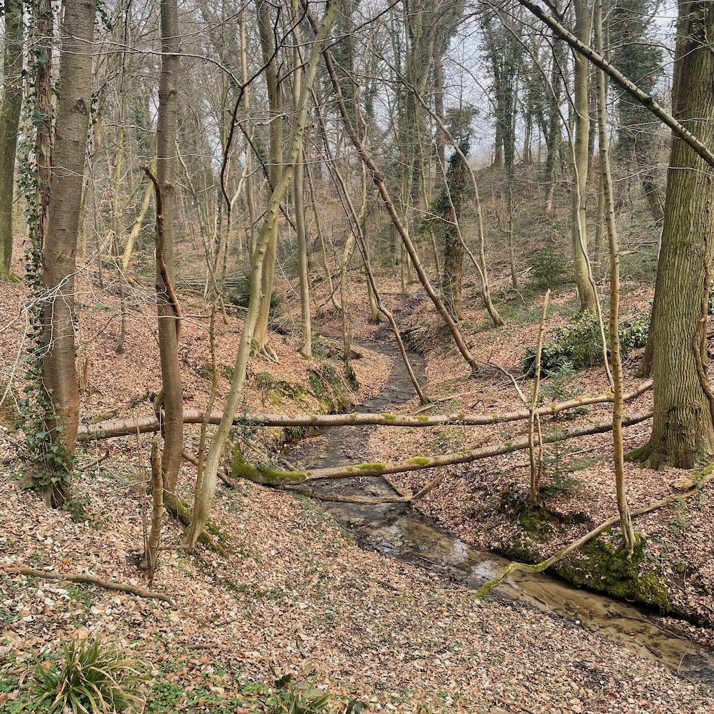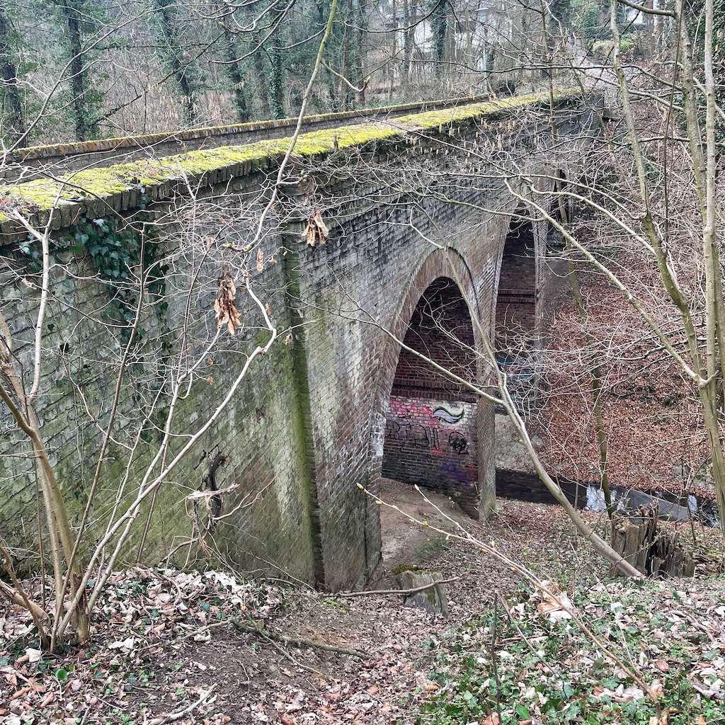 Danach wanderte ich durch die Südstadt, die Ortsteile Kessenich, Dottendorf und Friesdorf über den Venusberg, durch das Melbtal zurück bis Poppelsdorf. Das Wetter blieb trocken, ab und zu schimmerte die Sonne als blasse Scheibe durch den Dunst. Von der Temperatur her ließ es sich ohne Schal und Handschuhe gut aushalten. Dennoch hätte ich bei der nächsten Wanderung gegen ein paar Grad mehr nichts einzuwenden, auch Blätter auf den Bäumen wären wieder ganz schön.